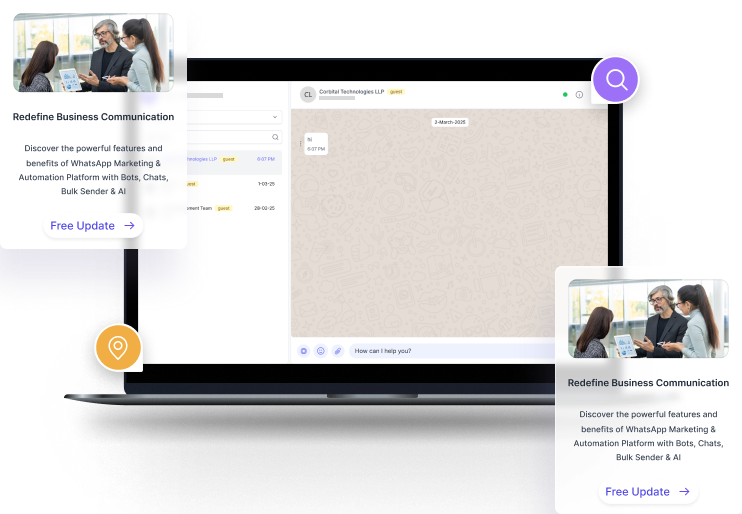 Tingkatkan pelayanan kepada pelanggan dengan platform Marketing WhatsApp kami yang canggih. Kirim pesan massal, buat chatbot, dan otomatisasi percakapan untuk meningkatkan penjualan dan kepuasan pelanggan.